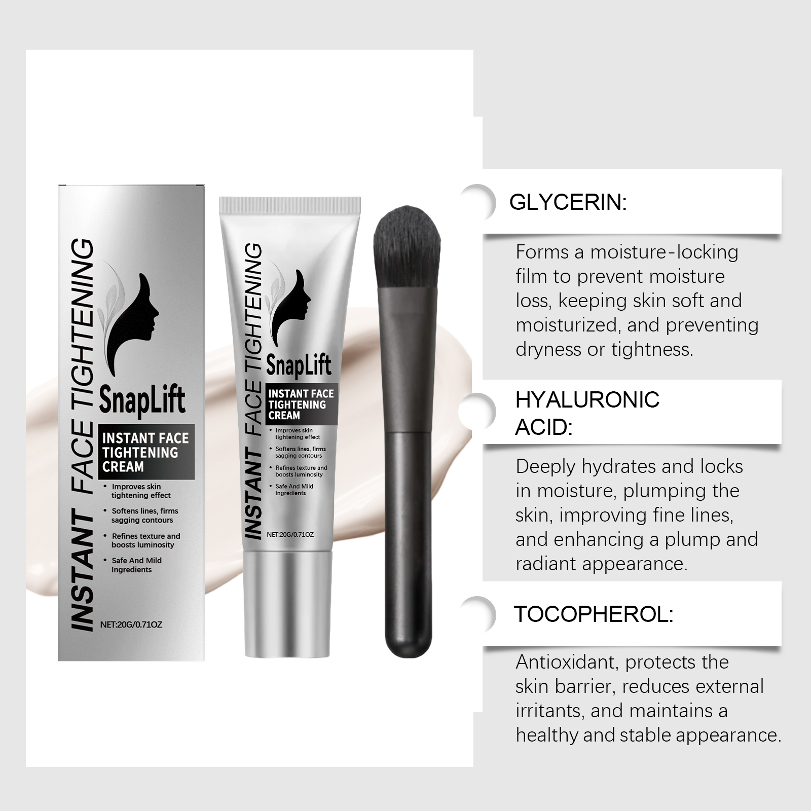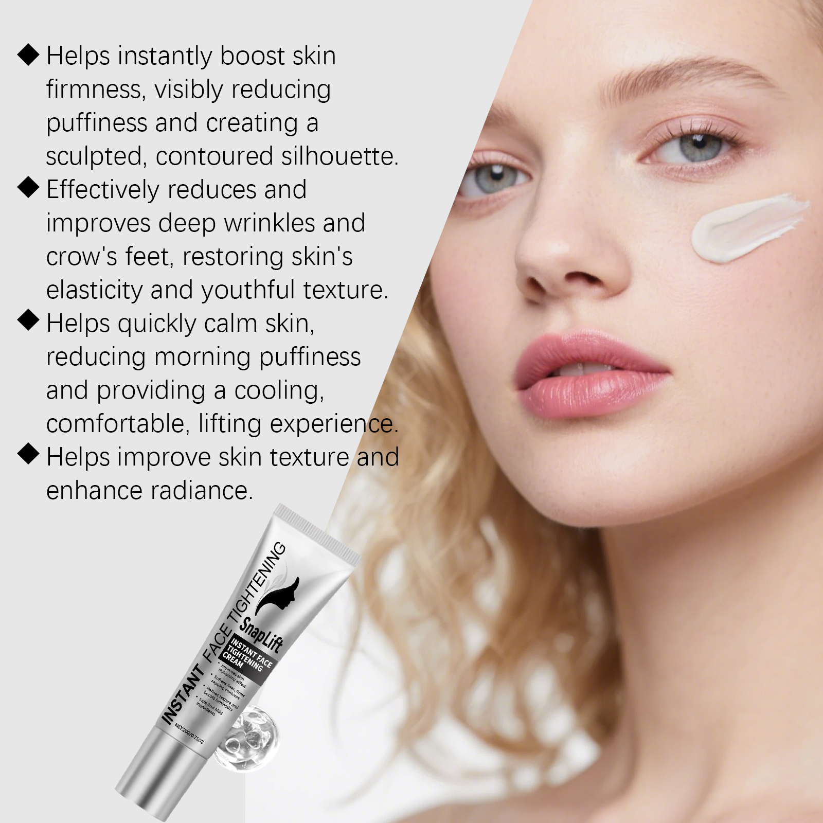 Our lifting and firming essence cream is carefully formulated with glycerin, mineral oil and glycerin stearate. Specifically designed to immediately enhance skin firmness, significantly reduce puffiness, create a three-dimensional and firm contour line, effectively alleviate and improve deep lines and crow's feet, and restore skin elasticity and a youthful texture. The usage method is extremely convenient: 1. Clean the facial skin and keep it dry. 2. Squeeze a pea-sized amount of this product onto the back of your hand. Use a brush to take a small amount of this product and apply it evenly to your facial skin. Gently massage until it is fully absorbed. And it can help quickly soothe the skin, reduce morning puffiness, provide a cool and comfortable lifting experience, and help improve skin texture and enhance skin luster.