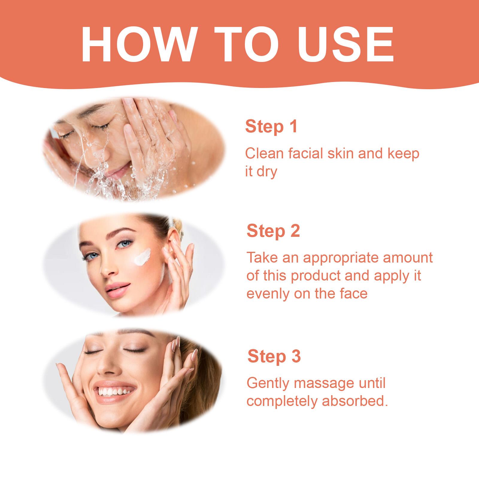 Our firming cream contains glutathione, vitamin C and licorice extract. It balances skin tone, improves skin texture, and makes your face whiter and softer. Helps to tighten loose skin, reduce wrinkles and fine lines, and make your face firmer and look younger. Its use method is very simple: 1. Clean facial skin, keep dry; 2. Apply appropriate amount of the product evenly on the face; 3. Gently massage until fully absorbed. Firming cream is light in texture, easy to absorb into the skin, not greasy, so that you enjoy fresh skin.