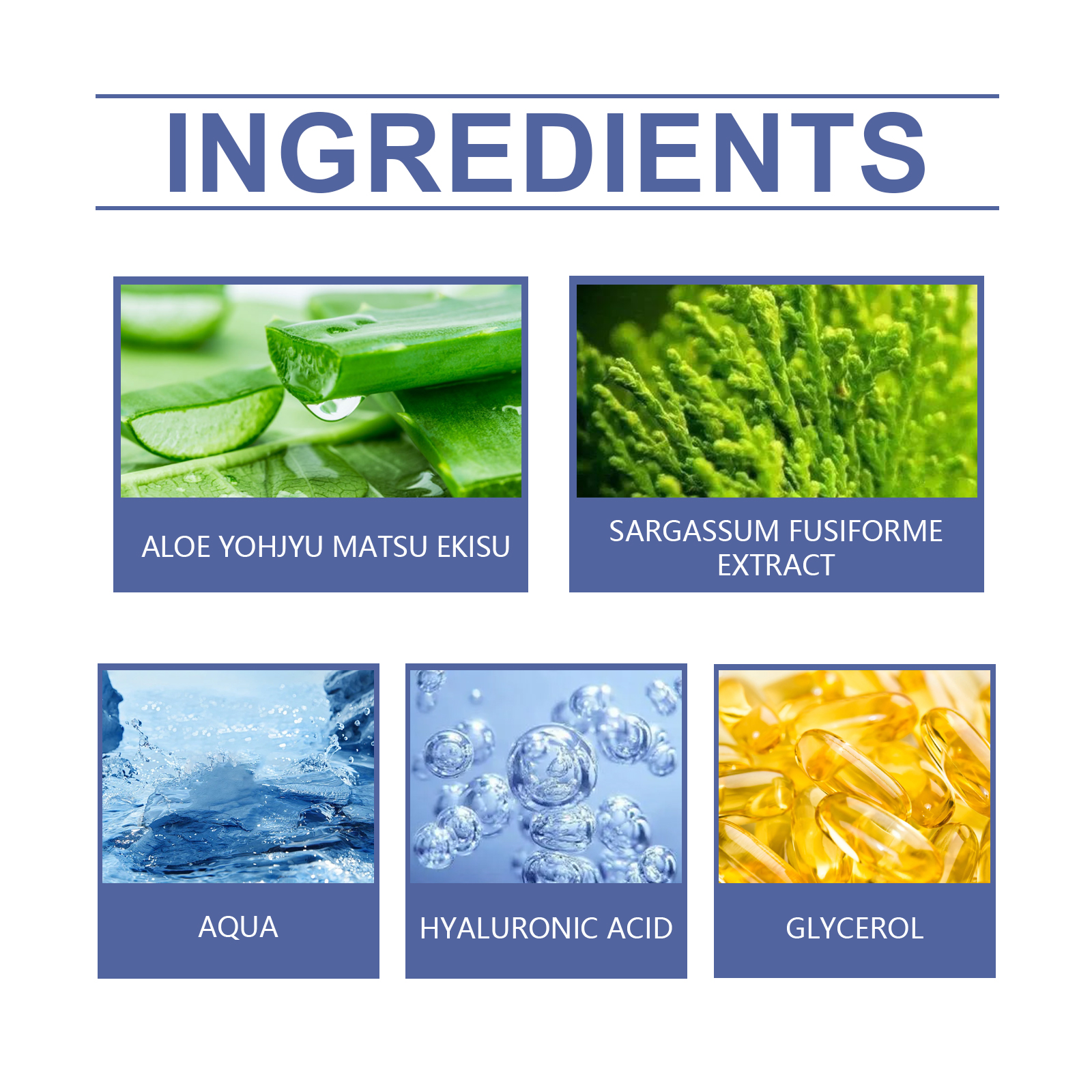Our hyaluronic acid hydrating spray contains aloe vera extract and seaweed leaf extract. It can penetrate efficiently, quickly inject water into the skin, and keep the skin moisturized for a long time. The way to use it is simple: clean your face thoroughly before use. Place the spray bottle about 15-20 cm from your face, close your eyes and mouth, and spray evenly on your face. After spraying, gently pat your face with your fingertips to help your skin absorb better. And the spray texture is light, quickly absorbed after spray, not sticky and greasy.