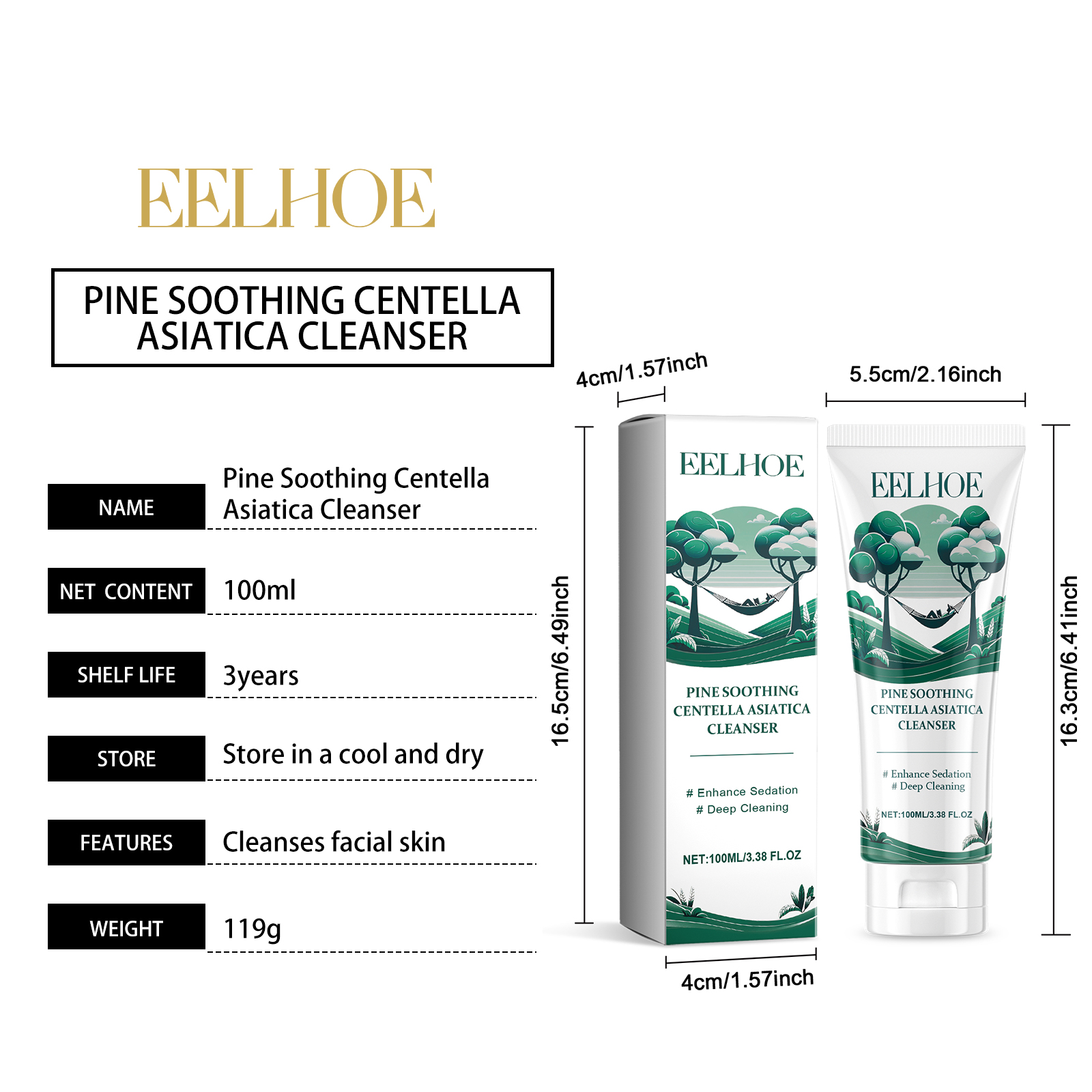 Home > EELHOE Pine Soothing Centella Asiatica Cleanser, Deep Clear Pores Soft Moisturizing Skin Moisturizing Non-Tight Cleanser