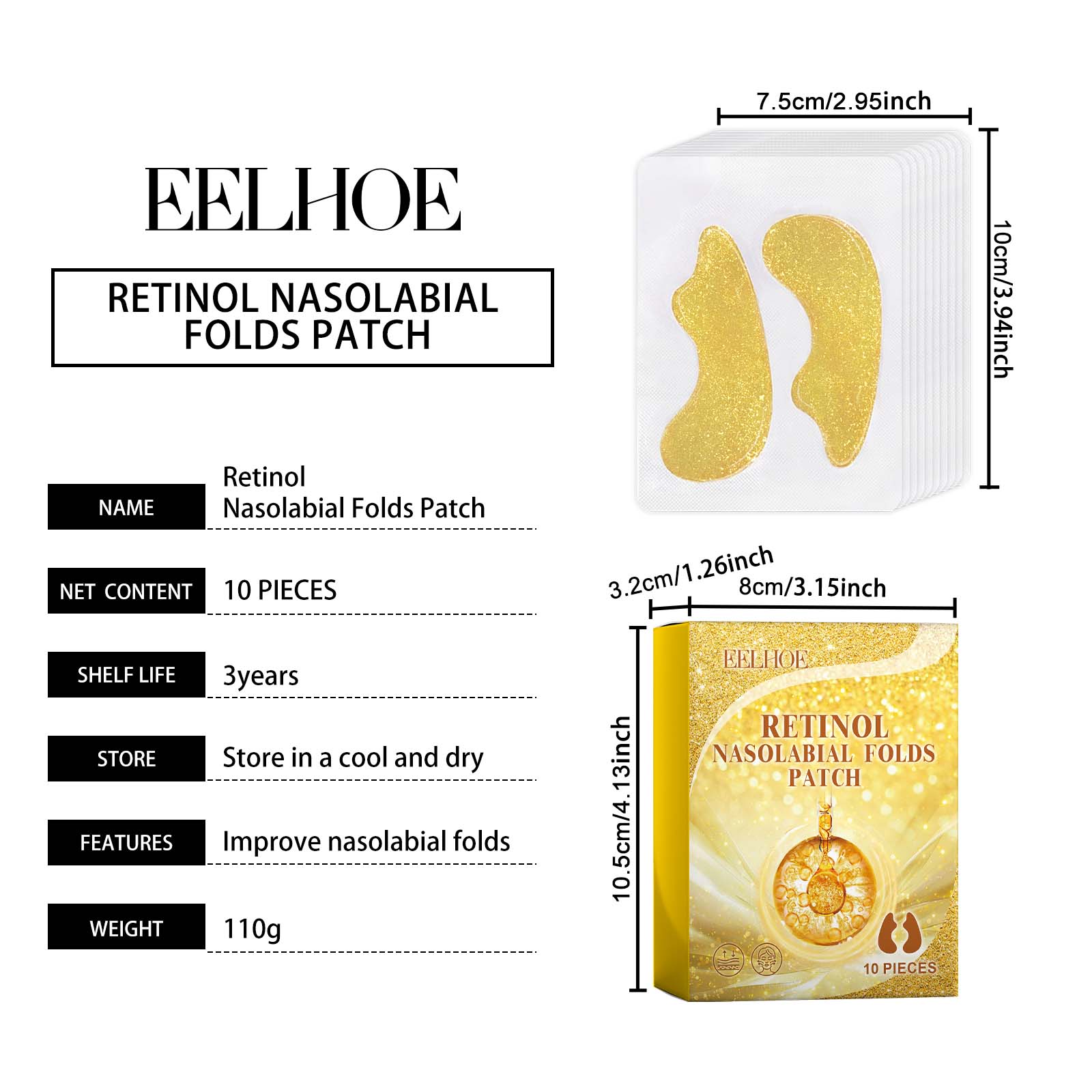 Home > EELHOE Retinol Nasolabial Folds Patch, Nourish Skin Smooth And Delicate Skin Improves And Reduces Fine Lines