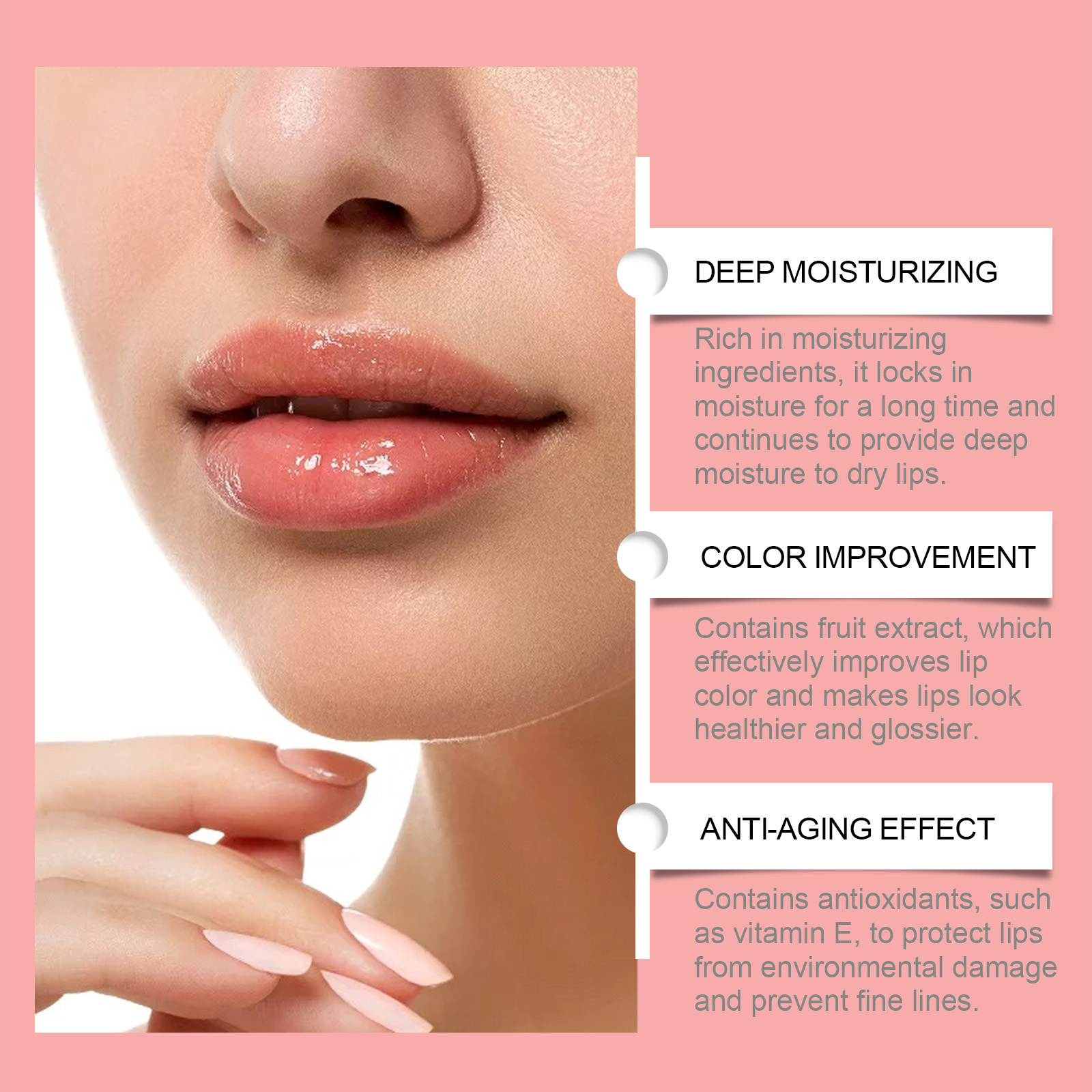 Our watermelon lip mask contains beeswax and watermelon fruit extract. It protects your lips from environmental damage and prevents fine lines. Its use method is very simple: thoroughly clean the lip skin dry, take an appropriate amount of lip mask, evenly apply to the lip skin. It can also be rich in moisturizing ingredients, lasting to lock in moisture, and continue to provide deep moisture for dry lips.