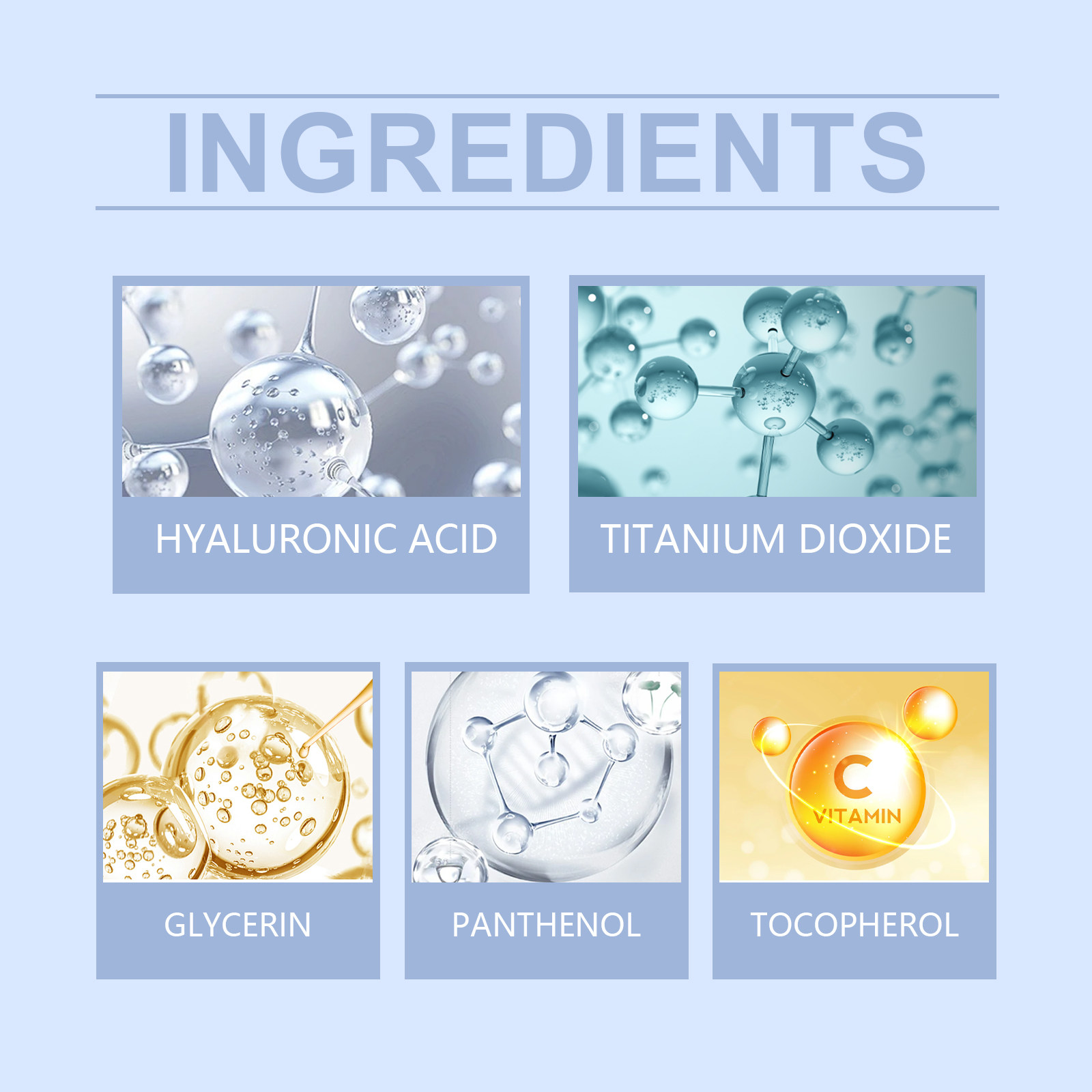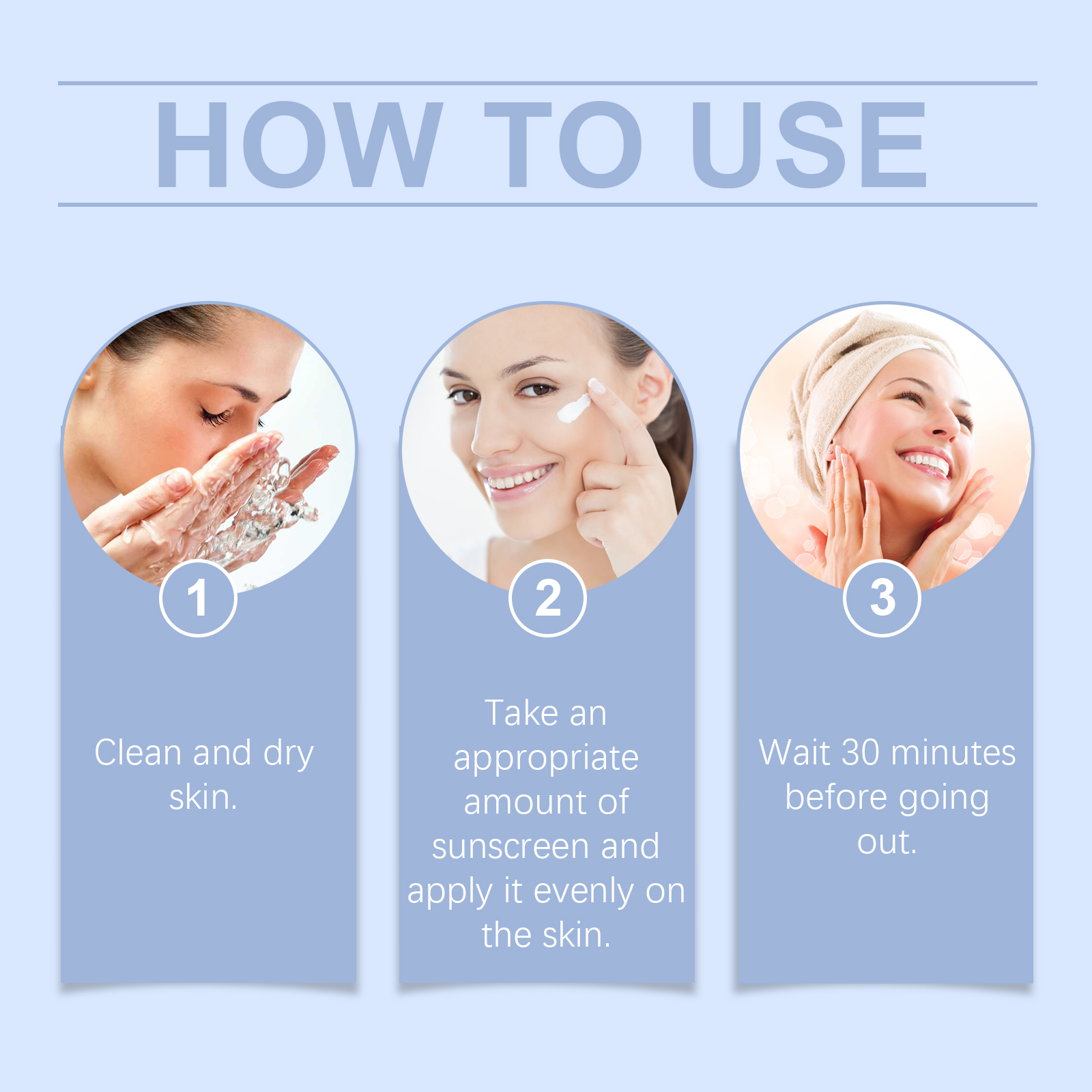 Our protective emulsion contains hyaluronic acid, panthenol. It moisturizes long term and keeps skin soft. Contains antioxidant ingredients to slow down skin aging. The way to use it is simple: clean dry skin. Apply appropriate amount of sunscreen to the skin. Wait 30 minutes before you leave. It can effectively resist oxidation, resist environmental stress, prevent photoaging, and keep the skin young.