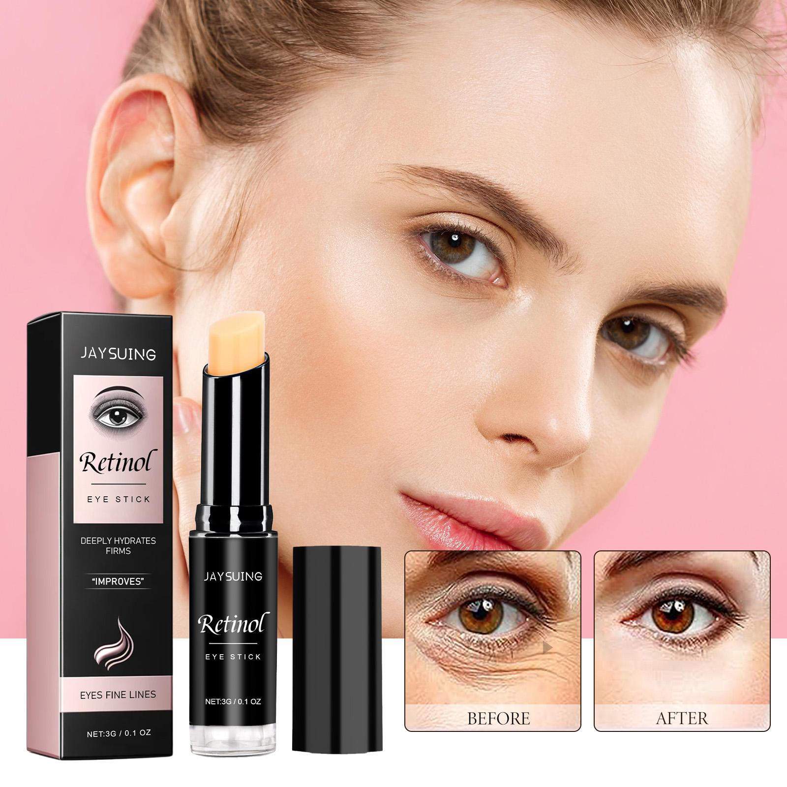Jaysuing Retinol Eye Stick, Light Dark Circles And Fine Lines Under Eyes Firming Eye Cream Stick