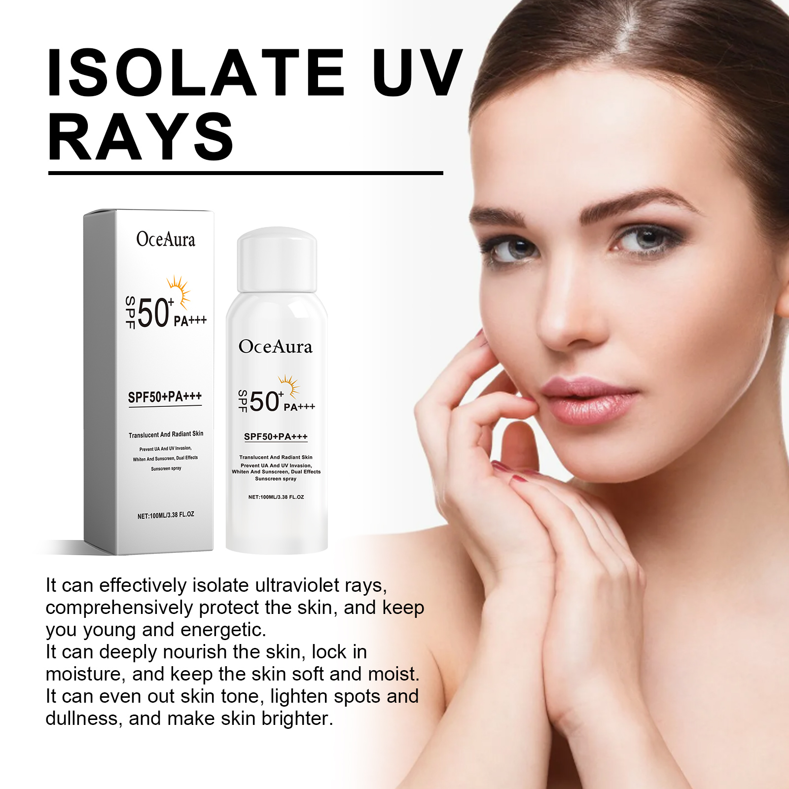OceAura Sunscreen Spray, Moisturizing And Refreshing Protective Spray For Outdoor Uv Protection