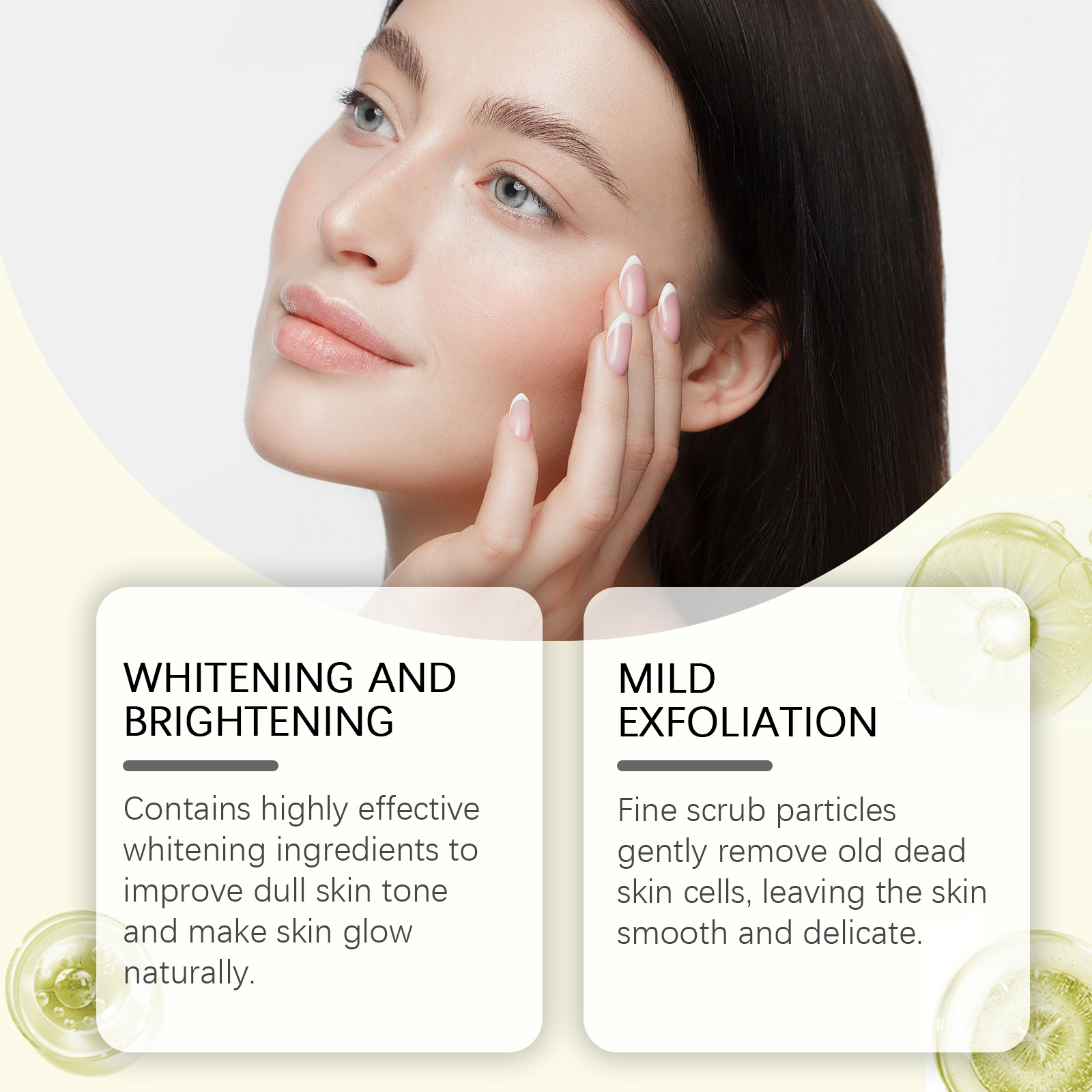 Our exfoliating Peel mask contains collagen, elastin and lemon fruit extract. It can improve the dull complexion and make the skin glow naturally. Its application method is simple: 1. Thoroughly clean and dry the skin; 2. Apply appropriate amount of the product evenly on the face, leave for 15-20 minutes to dry, then remove the mask; 3. Finally, clean your face with water. Fine scrub particles gently remove old dead skin cells, leaving skin smooth and delicate.