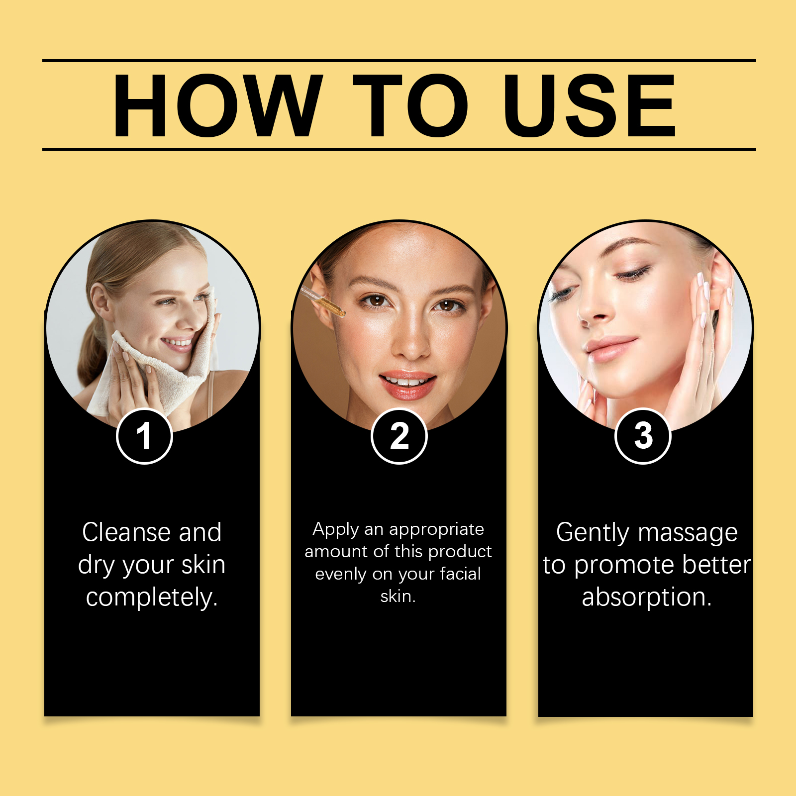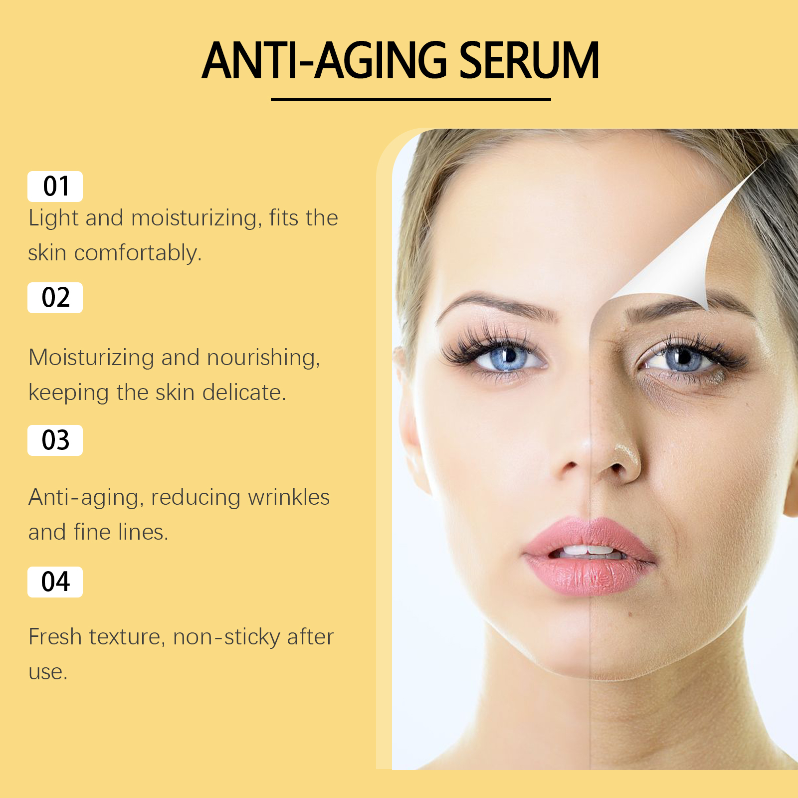 Our facial moisturizing essence contains hyaluronic acid, niacinamide, hydrogenated castor oil. It can improve the glow of the skin. Its application is simple: thoroughly clean and dry the skin. Apply appropriate amount of this product evenly on the face. Massage gently to promote better absorption. It can also reduce wrinkles and fine lines and smooth the skin.