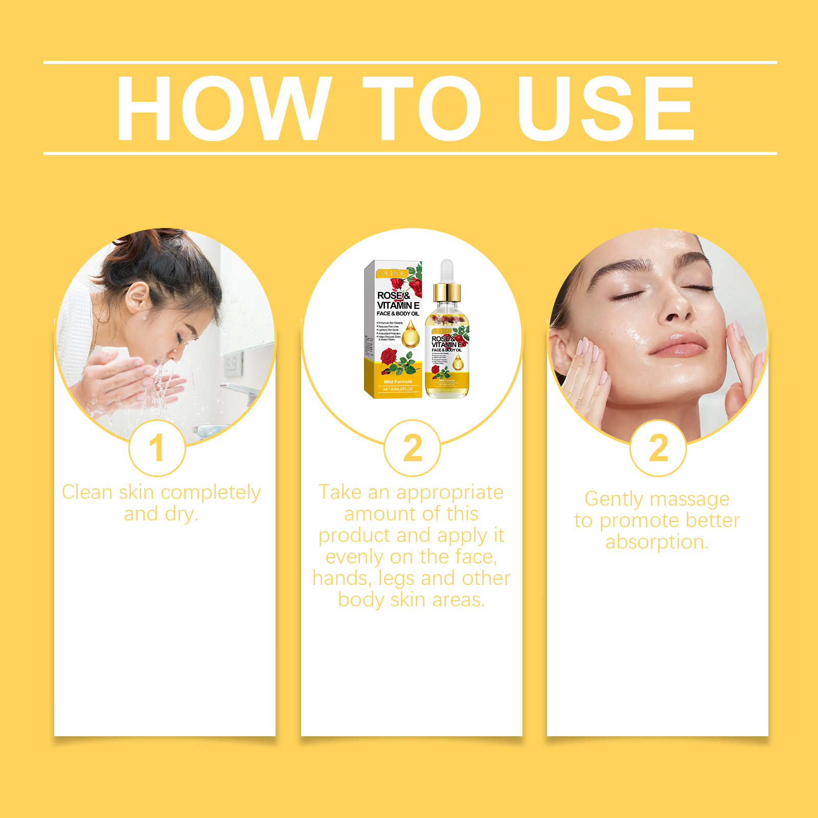 OUHOE Rose Vitamin E Essential Oil Moisturizes And Brightening Face To Improve Skin Elasticity And Radiance