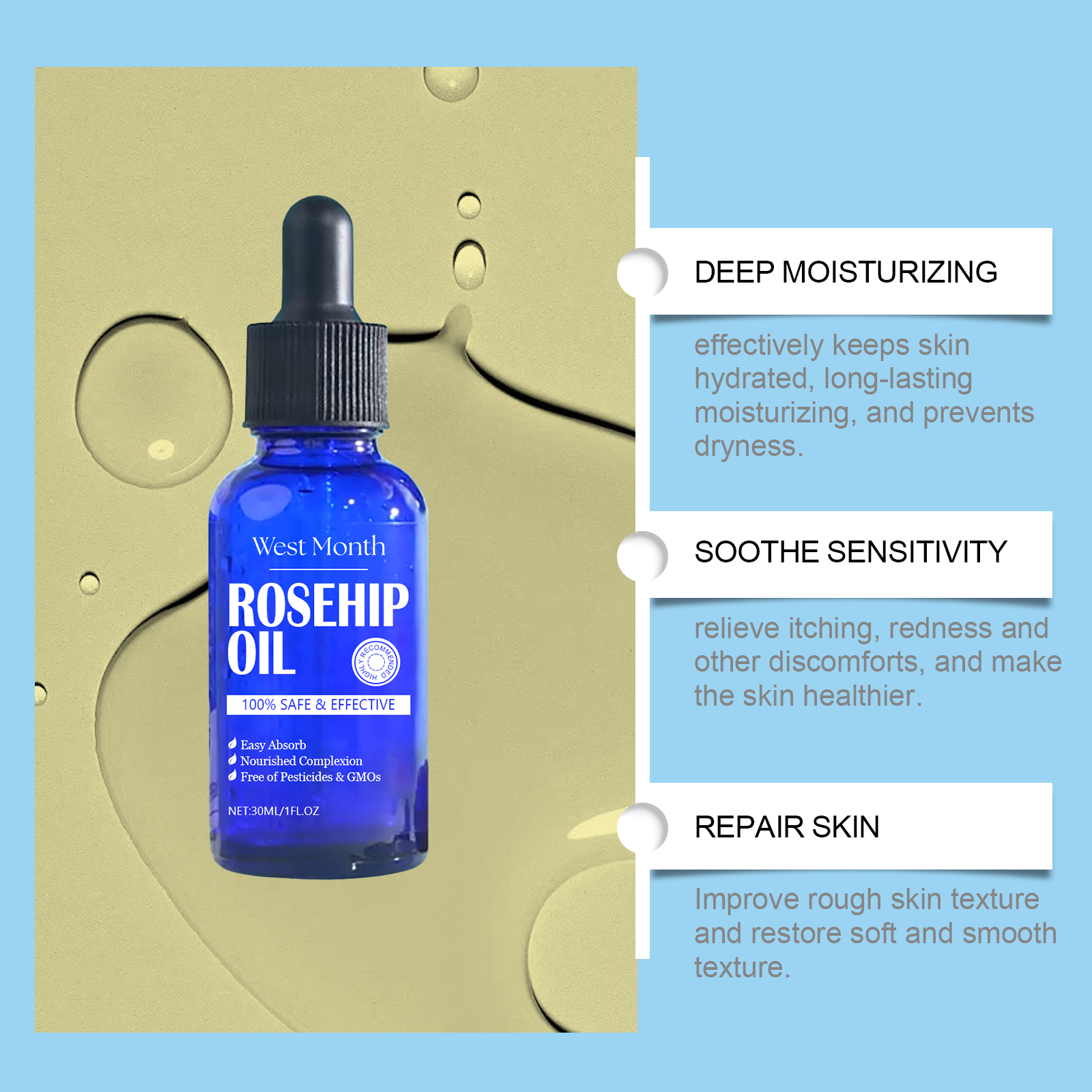 Home > West Month Rose Hip Skin Care Essential Oil, Facial Moisturizing Moisturizing Firming Skin Tender Essence