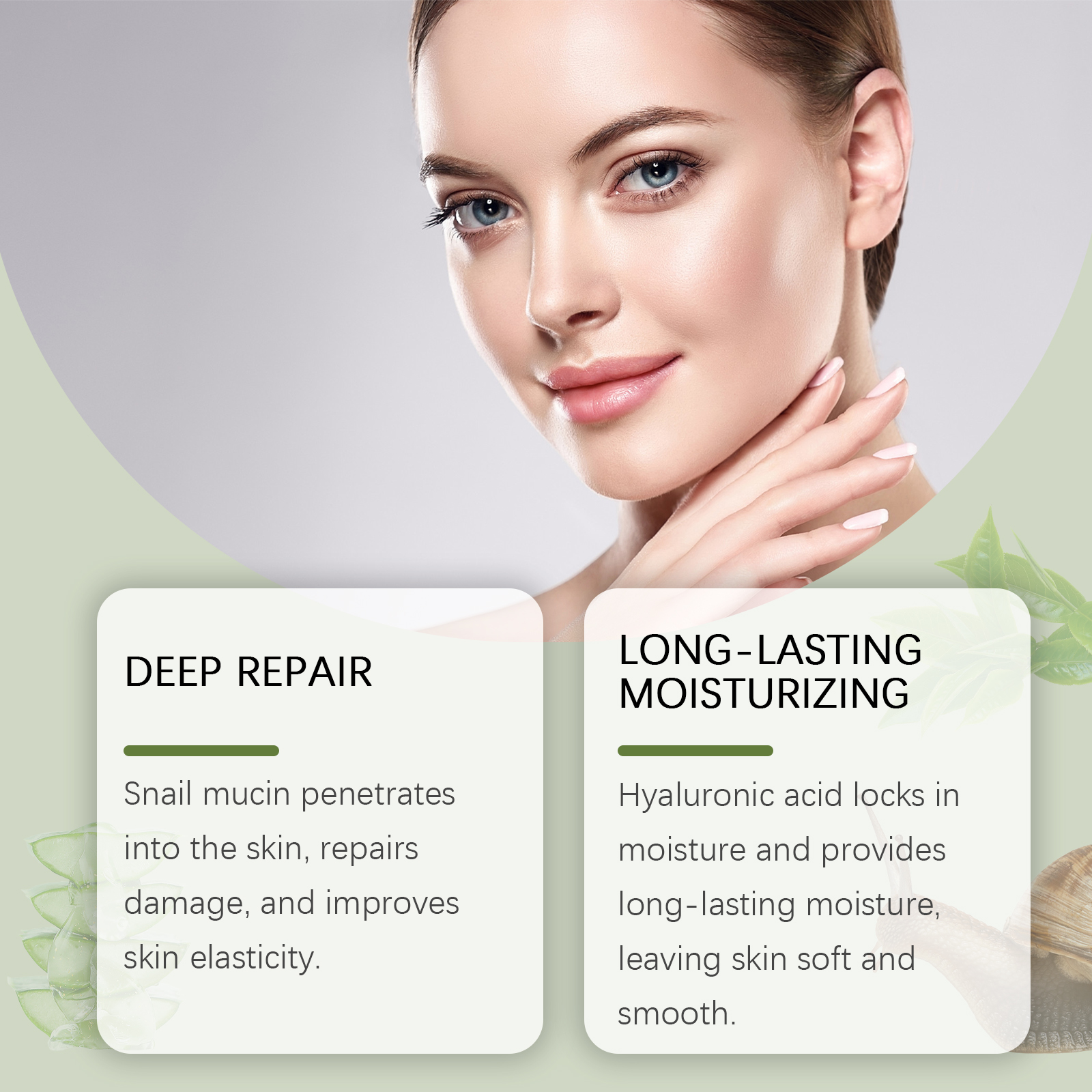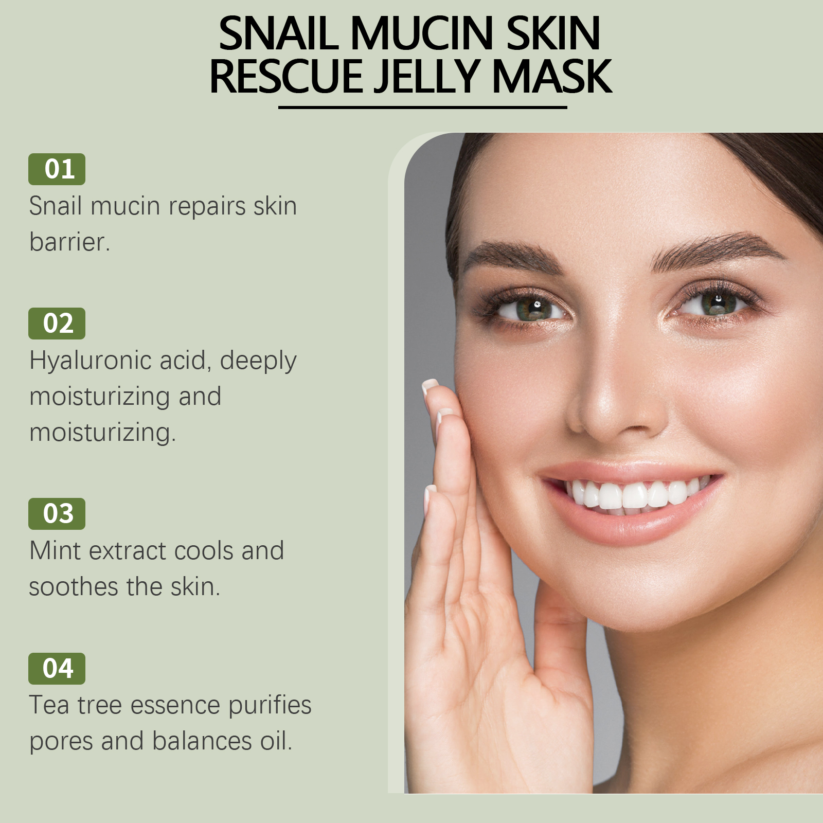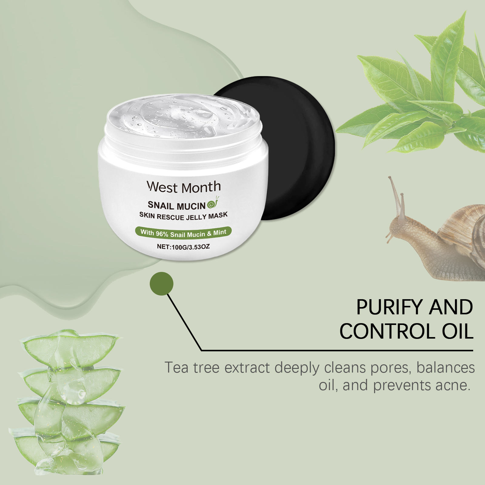 Our snail jelly mask is carefully formulated with triethanolamine and snail secretion filtrate. Designed specifically for penetrating the skin, repairing damage and enhancing skin elasticity. The usage method is extremely convenient: Clean your face and keep it dry. Take an appropriate amount of the mask with a mask spoon and apply it to your face, avoiding the skin around your eyes and lips. Leave the mask on your face for 10-15 minutes and then rinse it off with clean water. And it can instantly soothe, bring a refreshing feeling and relieve skin discomfort.