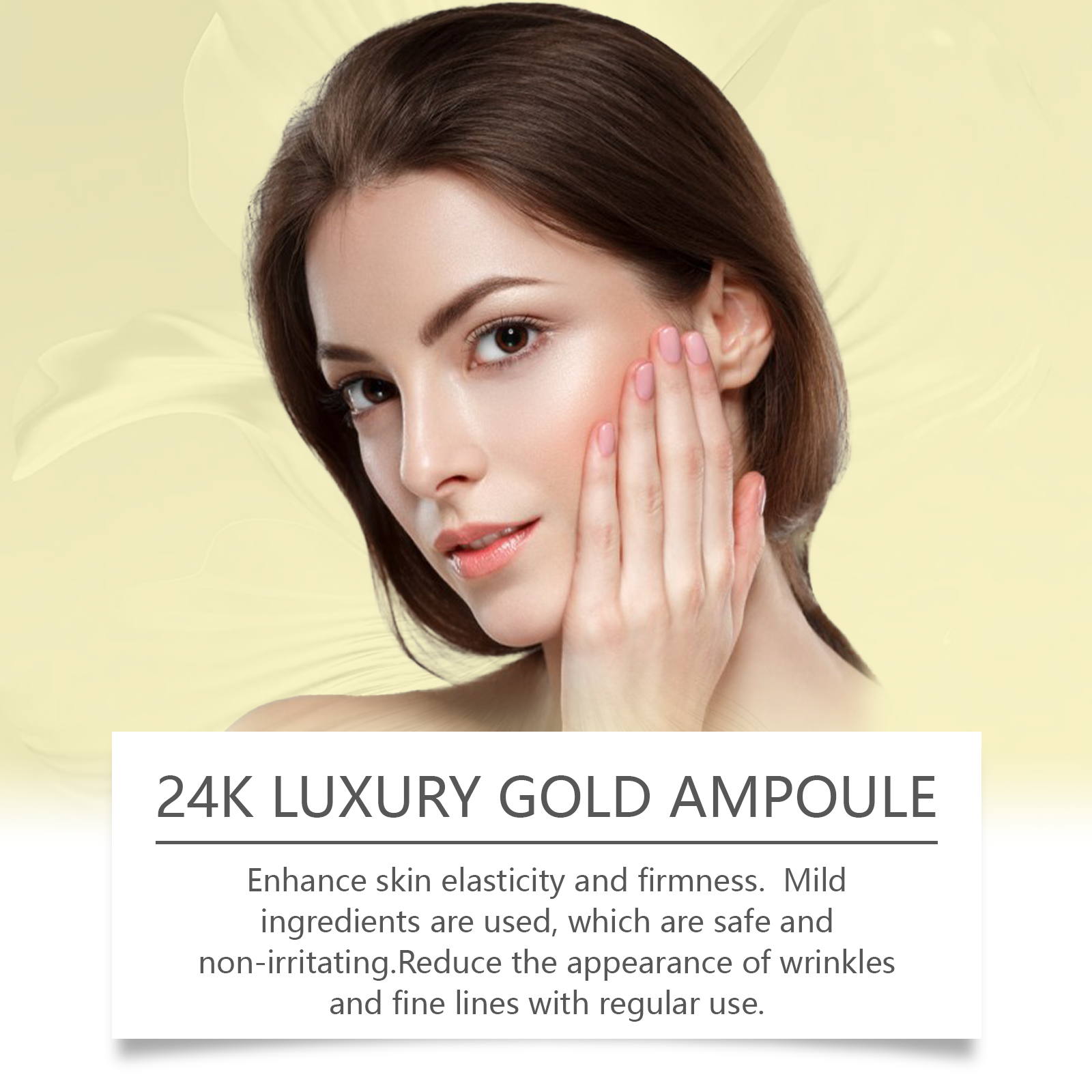 Our 24K gold skin care essence is carefully formulated with hyaluronic acid, ceramide EOS and ascorbic acid. Designed specifically for the appearance of fewer wrinkles and fine lines. The usage method is extremely convenient: Thoroughly clean and dry the facial skin. Take an appropriate amount of this product and apply it evenly to the facial skin. Gently massage to promote better absorption. And it can provide deep and long-lasting moisturizing effects.
