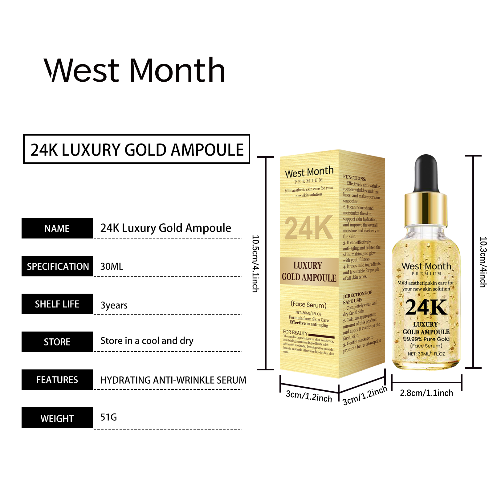 Home > West&Month 24k Gold Skin Care Essence, Hyaluronic Acid Essence Gently Nourishes And Moisturizes Facial Skin