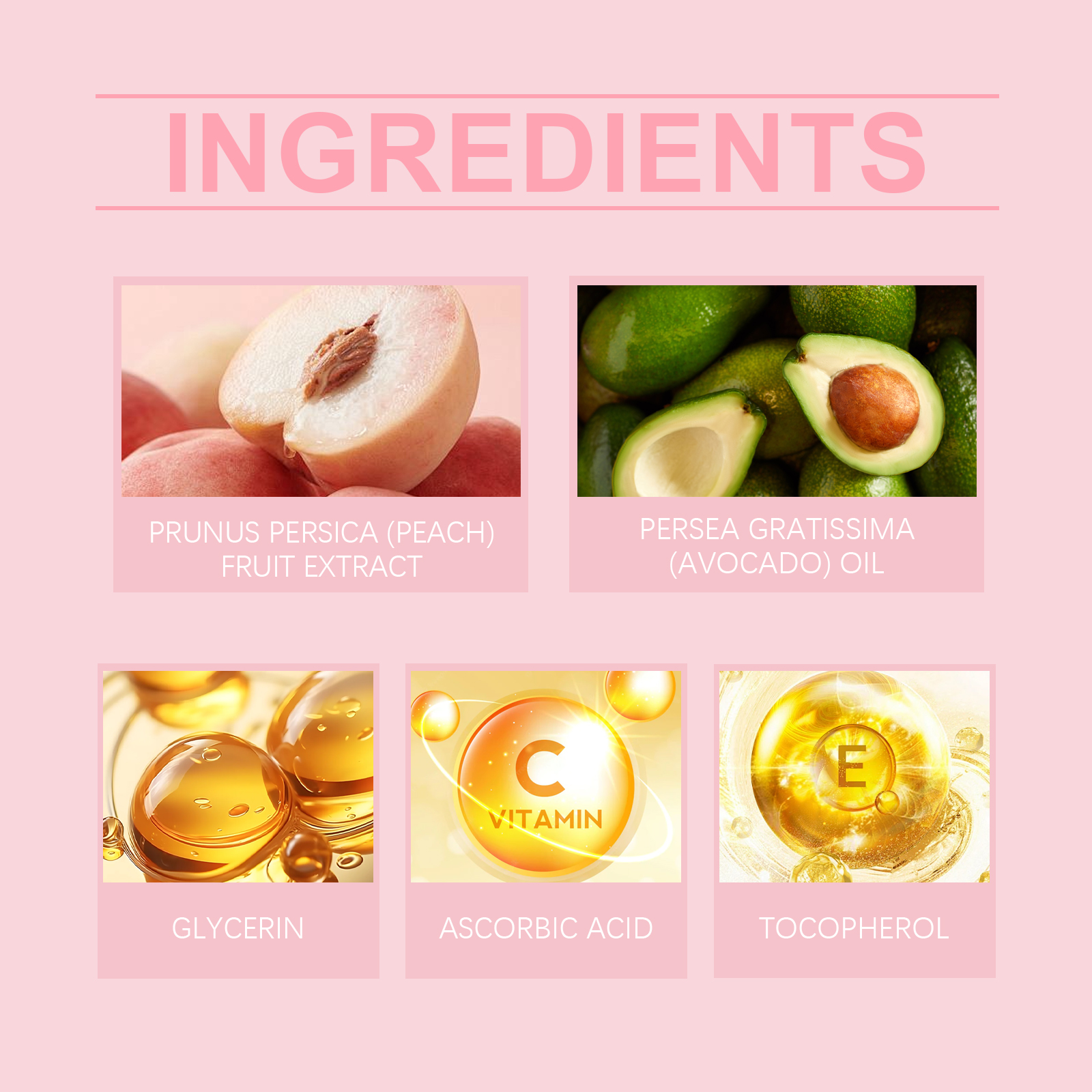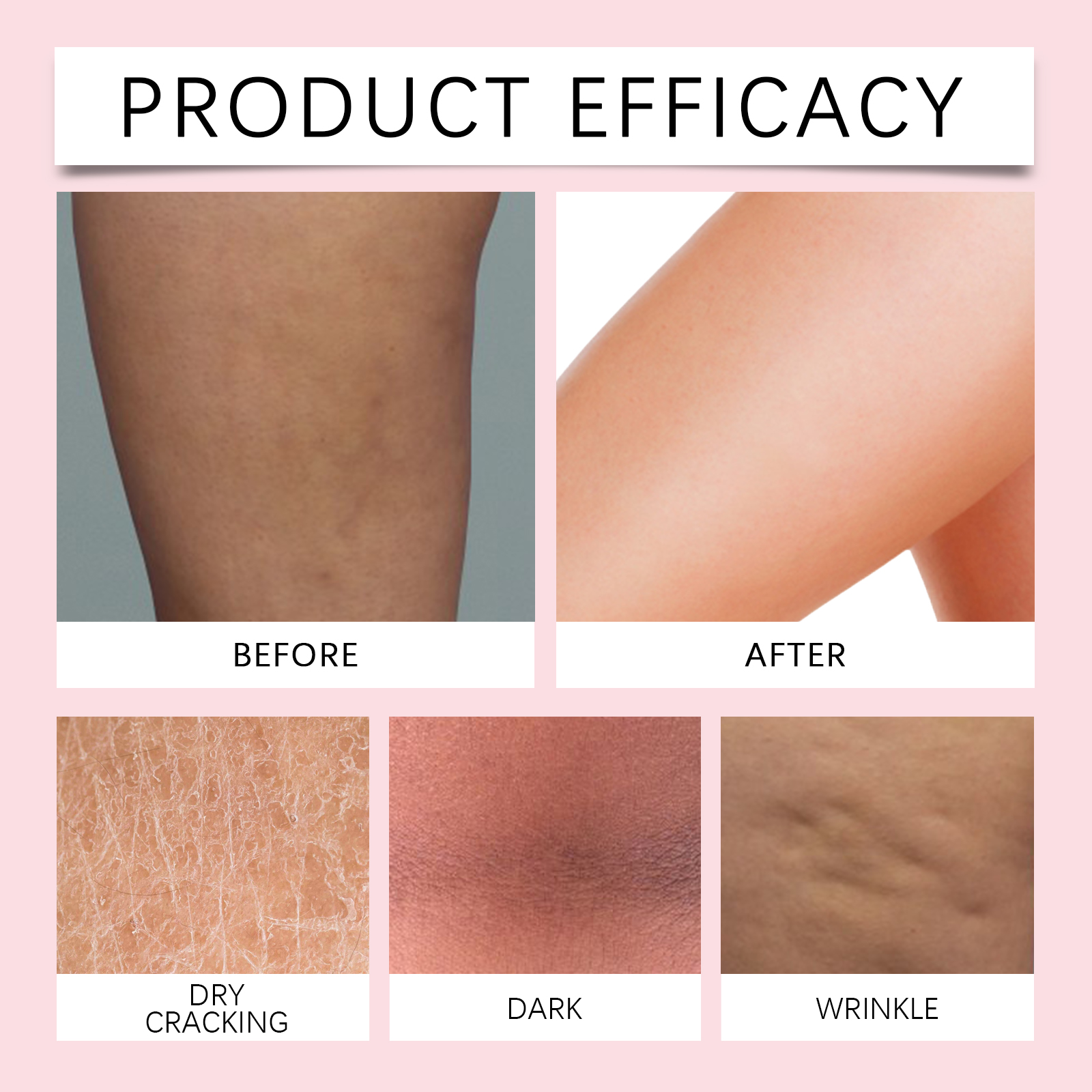 Our body scrub contains avocado oil and peach extract. It can effectively dilute melanin and gradually improve uneven skin tone. The method of use is very simple: moisten the skin, then evenly apply an appropriate amount of the cleanser on the thigh skin, gently massage the skin with your fingertips or wiping tool in a circular motion, massage the skin for 5-10 minutes, and rinse thoroughly with water. And the skin can feel smoother after use, helping to improve the overall texture of the skin. It also has a unique moisturizing ingredient that can keep the skin hydrated for a long time after use.