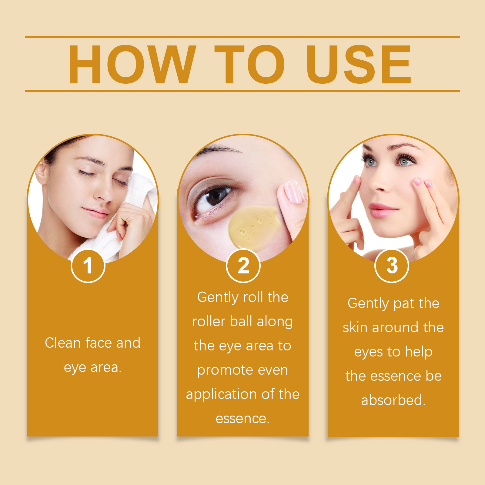 Our eye ball care serum contains mineral oil, Jojoba seed oil, tocopherol (vitamin E). It deeply moisturizes and protects the delicate eye area. Its application is simple: clean the face and eye area, gently roll the ball along the eye area to promote even application of the essence, and gently pat the skin around the eyes to help the essence be absorbed. It can also improve the elasticity of the skin around the eyes and reduce fine lines.