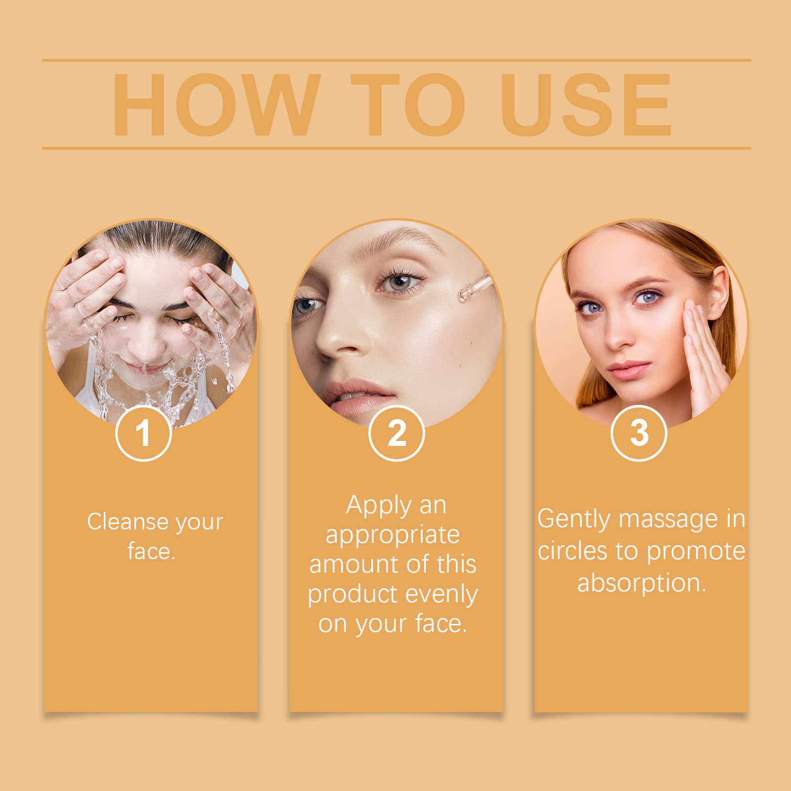 Our face serum contains vitamin E (tocopherol) and Centella asiatica extract. It can significantly improve skin firmness and make skin more elastic and rejuvenated. Its use method is very simple: clean your face, take appropriate amount of this product evenly spread on the face, gently massage in circles to promote absorption. It can effectively lock in moisture and help the skin retain moisture for a long time.