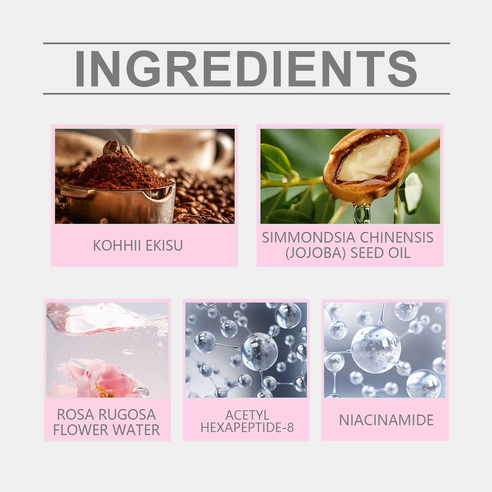 Our firming eye cream sticks contain Jojoba seed oil, coffee extract, and rose water. It can deeply moisturize the skin around the eyes and improve elasticity. Helps to improve dark circles and brightens the skin around the eyes. Its application method is very simple: 1. Clean the skin around the eyes and gently dry it. 2. Gently apply the cream to the entire eye area. 3. Gently pat around the eyes to promote absorption. Long-lasting moisture prevents dryness around the eyes and keeps skin soft. Easy to roll design, easy to use, suitable for daily skin care.