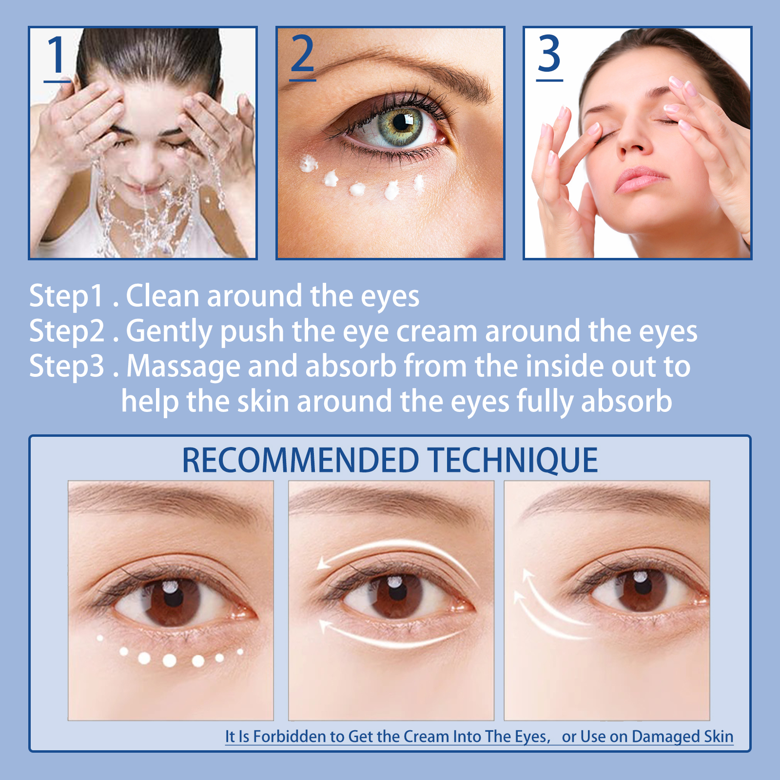 Our snake venom peptide eye cream contains deer collagen, sodium hyaluronate and Centella asiatica extract. It can reduce fine lines, firm the area around the eyes, remove dark circles, relieve edema, hydrate and moisturize, making your eyes more beautiful. Its usage method is very simple: First, clean the area around the eyes, then gently push the eye cream into the eye area and massage it from the inside out to absorb it, helping the skin around the eyes to fully absorb it. After use, it soothes eye tension, moisturizes, firs and repairs the skin, and helps reduce the appearance of fine lines and wrinkles.