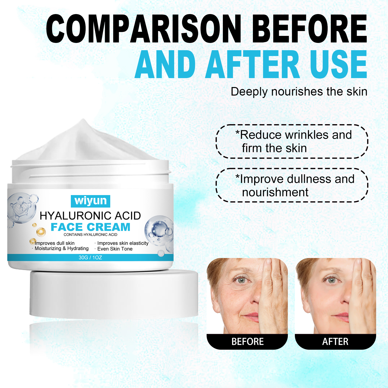 Home > WIYUN Hyaluronic Acid Face Cream, Fade Wrinkles Repair Skin Barrier Moisturizing Moisturizing Skin Anti-Wrinkle Cream
